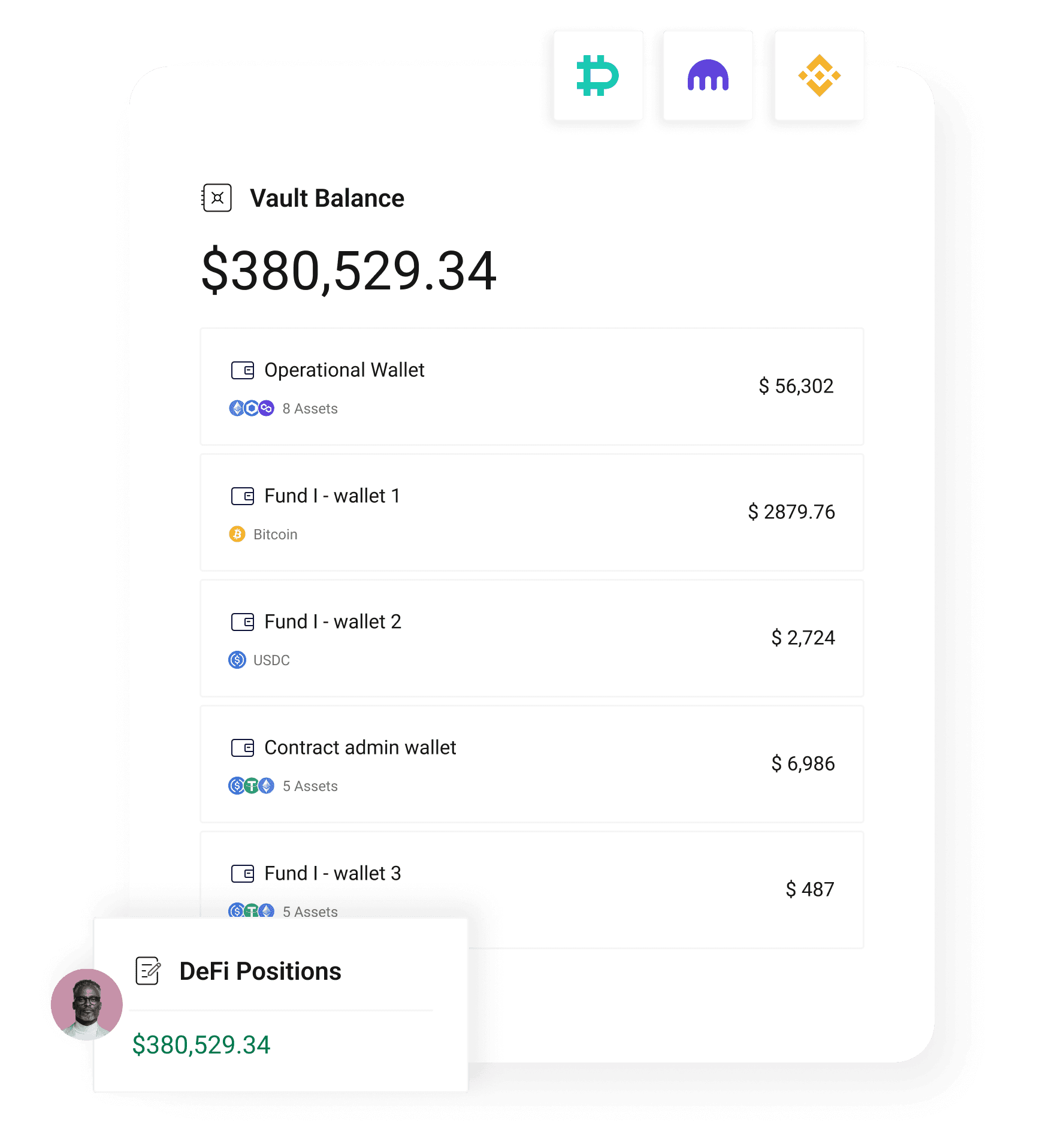 Plug into blockchains, exchanges, DeFi, on/off ramps, yield, compliance, staking, bridging, swapping, backup and recovery providers with built-in integrations.