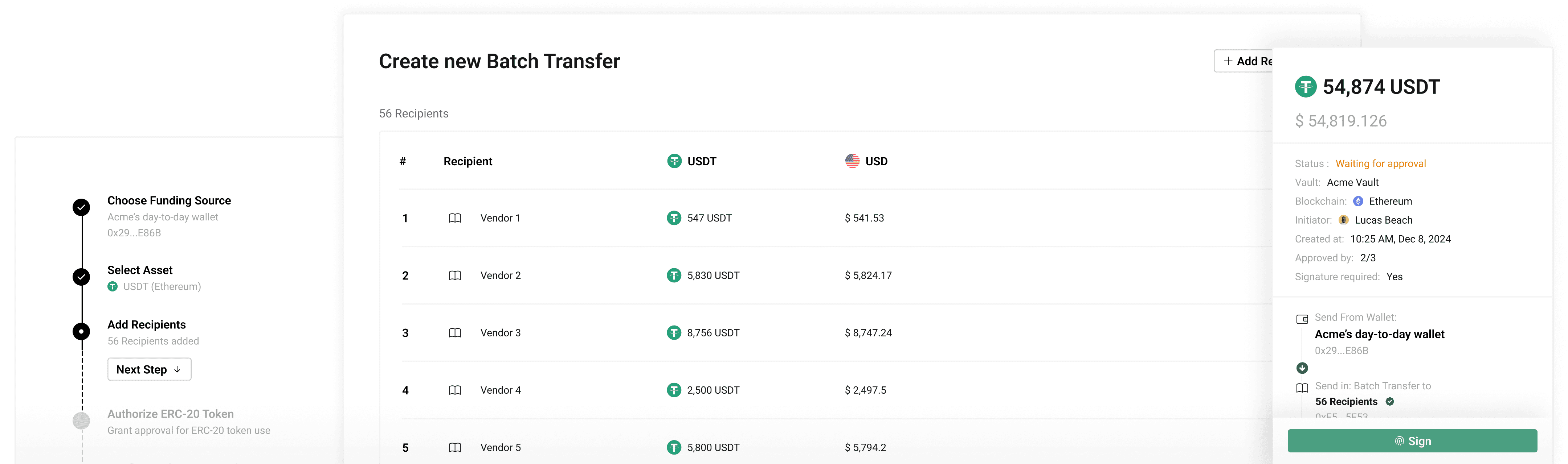 Create, approve and sign transactions from mobile app - anytime, anywhere.